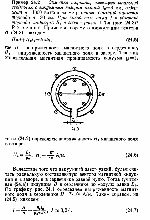 Ток I течет по длинному прямому проводнику, сечение. которого имеет форму тонкой дуги длины L и радиуса R (рис. 23.7). Определить индукцию магнитного поля в точке 0 . |