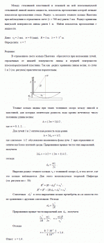 Между стеклянной пластинкой и лежащей на ней плосковыпуклой стеклянной линзой налита жидкость, показатель преломления которой меньше показателя преломления стекла. Радиус r8 восьмого темного кольца Ньютона при наблюдении в отраженном свете (L = 700 нм) равен 2 мм. Радиус R кривизны выпуклой поверхности линзы равен 1 м. Найти показатель преломления n жидкости. |