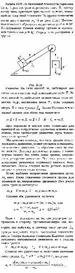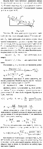 На наклонной плоскости укреплен блок, через который перекинута нить. К одному концу нити привязан груз массой m1 = 1 кг , лежащий на наклонной плоскости. На другом конце нити висит груз с массой m2 = 3 кг (рис. II.11). Наклонная плоскость образует с горизонтом угол аlfa = 30°. Коэффициент трения между грузом и наклонной плоскостью м = 0,1. Определить ускорение а грузов. |