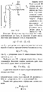 Груз массой М связан нитью с грузом m , лежащем на гладком горизонтальном столе, помещенном в лифте. Лифт движется с ускорением вектор а (рис. II.13). Определить натяжение нити Т. Масса m < М. |