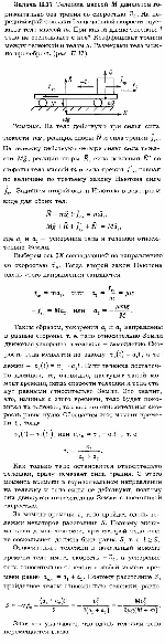 От поезда массой М, движущегося с постоянной скоростью, отцепляется последний вагон массой m , который проходит путь S и останавливается. На каком расстоянии L находится поезд от вагона в момент остановки последнего? Сила тяги поезда остается постоянной (рис. II.15). |