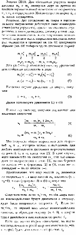На гладкой горизонтальной плоскости стоит брусок массой М, к которому на длинной нити L привязан шарик массой m . Вначале нить отклонили на некоторый угол и отпустили без начальной скорости. Определить скорость бруска в тот момент, когда нить проходит через вертикальное положение, если угловая скорость шарика в этот момент равна w. (рис. III.9). |