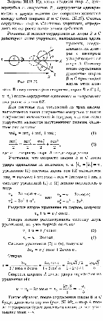 Два абсолютно упругих шара массами m1 и m2 движутся друг за другом по гладкой горизонтальной плоскости со скоростями v1 и v2 и соударяются. Найти скорости шаров вектор u1 , и вектор u2 после соударения. |