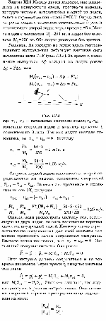 Навстречу платформе с песком массой М, движущейся горизонтально со скоростью вектор u0 , летит снаряд массой m со скоростью вектор v под углом аlfa к горизонту. Снаряд попадает в песок и застревает в нем. Определить скорость платформы вектор u после попадания снаряда (рис. III.7). |