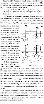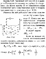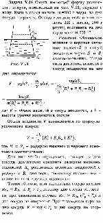 В двух цилиндрических сообщающихся сосудах налита ртуть. Сечение одного из сосудов Вдвое больше другого. Широкий сосуд доливают водой до края. На какую высоту h поднимается при этом уровень ртути в другом сосуде? Первоначально уровень ртути был на расстоянии L от верхнего края широкого сосуда. Плотность ртути р, воды р0 (рис. V.18). |