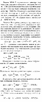 Газ массой m с молярной массой м нагревается на delta T = 1K в цилиндре, закрытом поршнем массой М и площадью S. Во время нагревания газ совершает работу по поднятию поршня. Выразить эту работу: а) через давление р и изменение объема delta V газа, б) через универсальную газовую постоянную R. Давлением наружного воздуха пренебречь (рис. VI.8). |