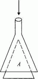 Объясните, почему бумажный конус А втягивается в воронку, а не выталкивается из нее при продувании через воронку воздуха в направлении, указанном стрелкой.