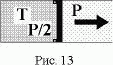 В длинном горизонтальном теплоизолированном неподвижном цилиндрическом сосуде, закрытом легким поршнем, содержится один моль идеального одноатомного газа при давлении в два раза меньшем внешнего давления P0 и температуре Т (рис. 13). Поршень может свободно перемещаться, увеличивая вместимость сосуда, и удерживается стопором от движения в противоположную сторону. Какое количество тепла Q следует подвести к газу, чтобы его объем увеличился в два раза? Трением, теплоемкостью сосуда и поршня пренебречь.
