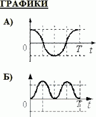 Конденсатор колебательного контура подключен к источнику постоянного напряжения (см. рисунок). Графики А и Б представляют изменения физических величин, характеризующих колебания в контуре после переведения переключателя К в положение 2. Установите соответствие между графиками и физическими величинами, зависимости которых от времени эти графики могут представлять.