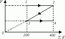 При переходе из состояния 1 в состояние 4 отношение работы A14, совершенной одноатомным газом в этом процессе, к количеству теплоты Q14 полученного газом, A14/Q14 равно 1) 0,29 2) 0,76 3) 0,58 4) 0,93.