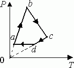 На рисунке изображен график зависимости давления Р идеального газа от температуры Т. Какой из приведенных на рисунке участок графика в замкнутом цикле соответствует процессу, происходящему с уменьшением объема?