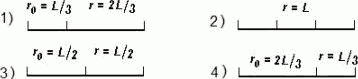 Световой луч проходит путь L, причем часть пути r — в однородной среде с показателем преломления п = 1,33, другую часть пути r0 — в вакууме (n = 1). Оптическая длина пути луча наибольшая в случае, представленном под номером... .