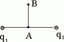 В вакууме на расстоянии r = 10 см друг от друга расположены два точечных заряда q1 = 8 нКл и q2 = –6 нКл. Расстояние АВ = 5 см, ε = 1. Чему равно отношение потенциалов полей φА/φВ , созданных зарядами в точках А и В?