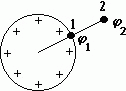 Каковы потенциалы φ1 и φ2 в точках 1 и 2 электростатического поля сферы? Как направлен градиент потенциала (gradφ) поля этой сферы в точках 1-2? 1) φ2 = 0, 2) φ1>φ2, 3) φ1 < φ2, 4) gradφ направлен от точки 1 к точке 2. 5) gradφ направлен от точки 2 к точке 1, 6) gradφ направлен параллельно касательной к поверхности сферы. Поясните свой выбор. |