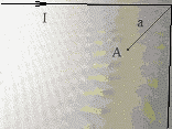 Определить направление и величину индукции магнитного поля в т.А (см. рис.), если ток I = 100 A, a = 1 м.