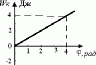 На рисунке представлен график зависимости кинетической энергии вращающегося Wк тела, момент инерции которого равен J = 2 кг·м2, от угла поворота φ. Чему равен вращающий момент сил, действующий на тело, в тот момент времени, когда угол поворота станет равным φ = 3 рад.