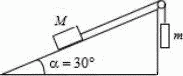 Показанная на рисунке система находится в равновесии. Коэффициент трения покоя между бруском массой М и поверхностью наклонной плоскости равен 0,4. Масса груза М = 4 кг. В каких пределах может меняться масса m? Какова сила трения, если m = 1 кг?
