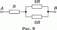 Чему равно сопротивление участка цепи AB (рис. 9), если R = 2 Ом.