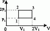 Азот совершает круговой процесс, состоящий из двух изохор и двух изобар (см. рисунок). Суммарное количество теплоты, полученное газом Q в этом круговом процессе, равно 1) 4P1V1; 2) 6,5P1V1; 3) 9,5P1V1; 4) 12P1V1.