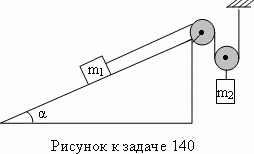 Определить ускорение каждого из тел в системе, изображенной на рисунке. Нити нерастяжимы. Массой блоков и нитей, а также трением пренебречь. Массы грузов m1 = 0,1 кг и m2 = 0,6 кг. Угол наклонной плоскости α = 30°.