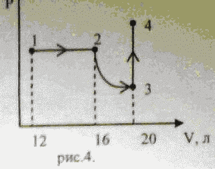 Найти давление и среднюю кинетическую энергию теплового движения молекул 0,8 молей гелия в начале процесса, изображенного на рис. 4, где 2-3 — изотерма. Известно, что средняя квадратичная скорость молекул в конечном состоянии 2,5 км/с, а давление в изохорном процессе изменяется в 2,5 раза.