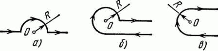 Определить индукцию магнитного поля в точке О, если проводник с током I имеет вид, показанный на рисунках. Радиус изогнутой части проводника равен R, прямолинейные участки проводника предполагаются очень длинными.