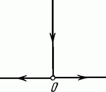 Постоянный ток I течет по длинному прямому проводу. Из точки О (см. рис.) он растекается радиально-симметрично по безграничной проводящей плоскости, перпендикулярной к проводу. Найти индукцию магнитного поля во всех точках пространства.