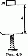 Тело массы m упало с высоты h на чашку пружинных весов (рис. 4.9). Масса чашки равна М, масса пружины пренебрежимо мала, жесткость последней k. Прилипнув к чашке, тело начинает совершать гармонические колебания в вертикальном направлении. Найти период колебаний в этом случае.