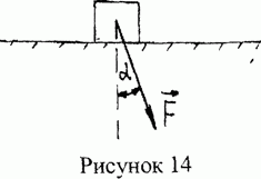 На горизонтальной поверхности покоится тело, к которому приложена сила F (рисунок 14). При каких значениях угла α тело будет оставаться в покое независимо от величины силы? Коэффициент трения равен 0,15.