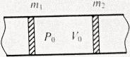 В длинной гладкой теплоизолированной трубе находятся теплоизолированные поршни массой m1 и m2, между которыми в объёме V0 находится при давлении р0 одноатомный газ. Поршни отпускают. Определите их максимальные скорости, если масса газа много меньше массы каждого поршня.