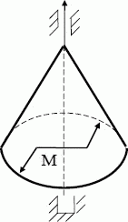 Однородный круговой конус массой 100 кг вращается без начальной угловой скорости вокруг своей вертикальной оси. Радиус основания конуса 50 см. К конусу приложена механическая пара сил, расположенная в плоскости, перпендикулярной оси конуса. Найти величину момента этой пары, если через 6 с после начала движения конус имеет угловую скорость вращения ω = 16 рад/с. Трением пренебречь.