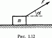 Брусок массы m тянут за нить так, что он движется с постоянной скоростью по горизонтальной плоскости с коэффициентом трения к (рис. 1.12). Найти угол α, при котором натяжение нити минимально. Чему оно равно?