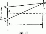 Найти распределение интенсивностей на экране в интерференционном опыте Юнга (рис. 10).