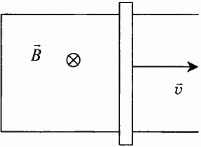 П-образный контур находится в однородном магнитном поле, перпендикулярном плоскости контура (см. рис.). Индукция магнитного поля В = 0,2 Тл. По контуру с постоянной скоростью скользит перемычка длиной l = 20 см и сопротивлением R = 15 Ом. Сила индукционного тока в контуре I = 4 мА. Перемычка движется со скоростью ... .
