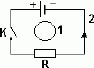 Проводящий контур 1 находится в магнитном поле, созданном током, текущим в цепи 2 (см. рисунок). Контур и цепь лежат в одной плоскости. В каком направлении будет протекать индукционный ток Ii в контуре 1 при размыкании цепи 2?
