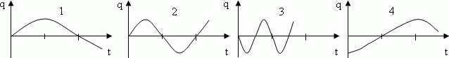 На графиках приведены зависимости заряда q от времени t в четырех идеальных колебательных контурах. Амплитудное значение заряда во всех контурах одинаково. Максимальная амплитуда силы тока соответствует графику, приведенному под номером ... .