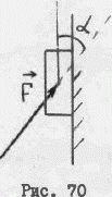 Тело массой m = 0,1 кг движется вверх по вертикальной стене под действием силы F = 2 Н, направленной под углом α = 30° к вертикали (рис. 70). Коэффициент трения равен μ = 0,2. Найти ускорение тела.
