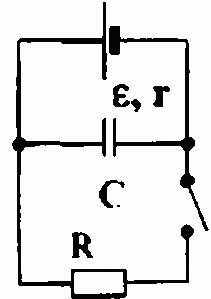Конденсатор подключен к батарее с ЭДС ε = 8 В и внутренним сопротивлением r = 2 Ом как показано на рисунке. Сопротивление резистора R = 2 Ом. Какой должна быть емкость конденсатора, чтобы после замыкания ключа энергия конденсатора уменьшилась на 48 мкДж?