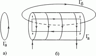 По соленоиду длиной l = 1 м без сердечника, имеющему ? = 1000 витков, течет ток силой I = 20 А. Определить циркуляцию вектора магнитной индукции вдоль контура, изображенного на рис. а, б.
