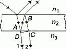 Оптическая разность хода Δ21 волн 1 и 2 равна ... 1) Δ21 = (AB+BC)·n2 – AD·n3 2) Δ21 = AD·n3 3) Δ21 = (AB+BC)·n2 – AD·n3 + λ/2 4) Δ21 = (AB+BC)·n2 – AD·n3 + 2λ/2 |