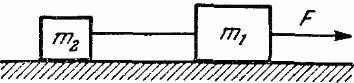 Два груза с массами m1 и m2 лежат на гладкой горизонтальной плоскости и связаны между собой тонкой нитью, способной выдерживать наибольшую нагрузку Р. Определить максимальную силу F, с которой можно тянуть за груз m1, чтобы нить не оборвалась. Изменится ли величина этой силы, если тянуть за груз m2? Трением грузов о плоскость пренебречь.
