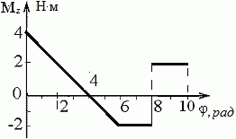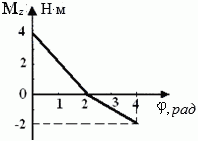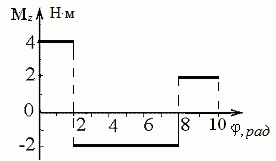 На рисунке представлен график зависимости проекции вращательного момента силы, действующей на тело, от угла поворота. Чему равна работа сил, действующих на тело, при повороте его на угол 4 рад?
