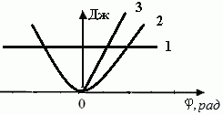 На рисунке приведены графики зависимости различных физических величин от угла поворота тела φ. Какой график соответствует зависимости кинетической энергии тела, вращающегося с постоянным угловым ускорением, момент инерции которого не изменяется за время движения?