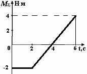 На рисунке представлен график зависимости проекции вращательного момента силы, действующей на тело, от времени. Чему равен момент импульса тела в момент времени t = 6 с, если в начальный момент времени тело покоилось?