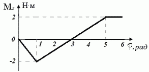 На рисунке представлен график зависимости проекции вращательного момента силы, действующей на тело, от угла поворота. Чему равна работа сил, действующих на тело, при повороте его на угол 6 рад?