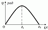 На рисунке приведен график зависимости угла поворота φ тела при вращательном движении от времени. Как изменяется кинетическая энергия тела в интервале времени от t1 до t2?