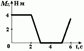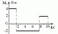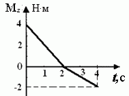 На графике приведена зависимость проекции момента силы, действующей на тело, от времени. Какой момент импульса будет иметь тело к концу четвертой секунды движения, если в начальный момент t0 = 0 тело покоилось.