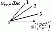 На рисунке приведены зависимости кинетической энергии трех вращающихся тел Wвр от квадрата угловой скорости ω2. Какому графику соответствует наименьший момент инерции тела? Укажите его номер и поясните свой выбор.