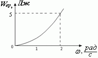 На рисунке дан график зависимости энергии вращающегося тела Wвр от угловой скорости. Чему будет равен момент импульса тела, при величине угловой скорости равной ω = 4 рад/с?