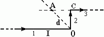 Бесконечно длинный прямой проводник, по которому течет ток I = 5,0 А, согнут под прямым углом так, как показано на рисунке. Найти индукцию магнитного поля в точке А, лежащей на биссектрисе прямого угла на расстоянии d = 10 см от вершины угла.
